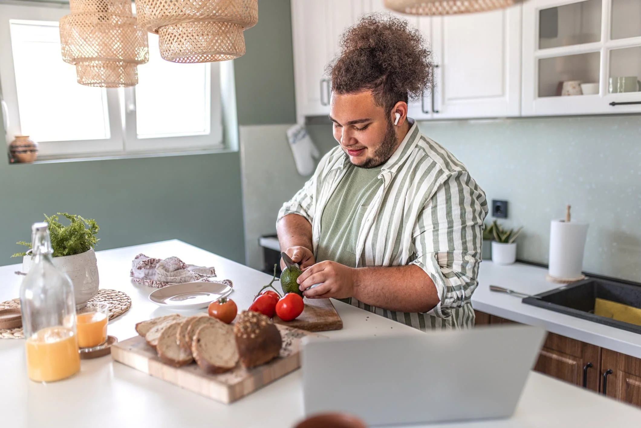 Person preparing fresh food in the kitchen, representing intuitive eating and a positive relationship with food in recovery